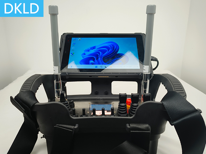 • 3个双轴摇杆+8个按键+1个两档旋转开关+1个5档旋转开关7寸触摸屏平板型工业无线遥控器